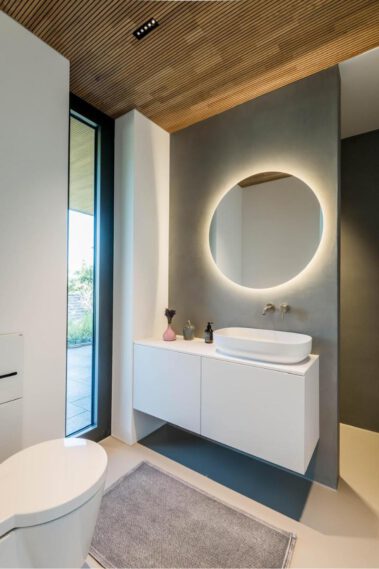 Über das System werden zentrale Funktionen des Hauses gesteuert: dimmbare und farblich einstellbare Beleuchtung (von warm- bis kaltweiß), Jalousien, schaltbare Steckdosen, Heizung, Klimaanlage, Fenstersteuerung und die Füllstandsüberwachung der Zisterne. Das Ergebnis ist ein komfortables, zukunftssicheres Wohnkonzept mit hoher Funktionalität und moderner Technik – aus einer Hand geplant, installiert und in Betrieb genommen.